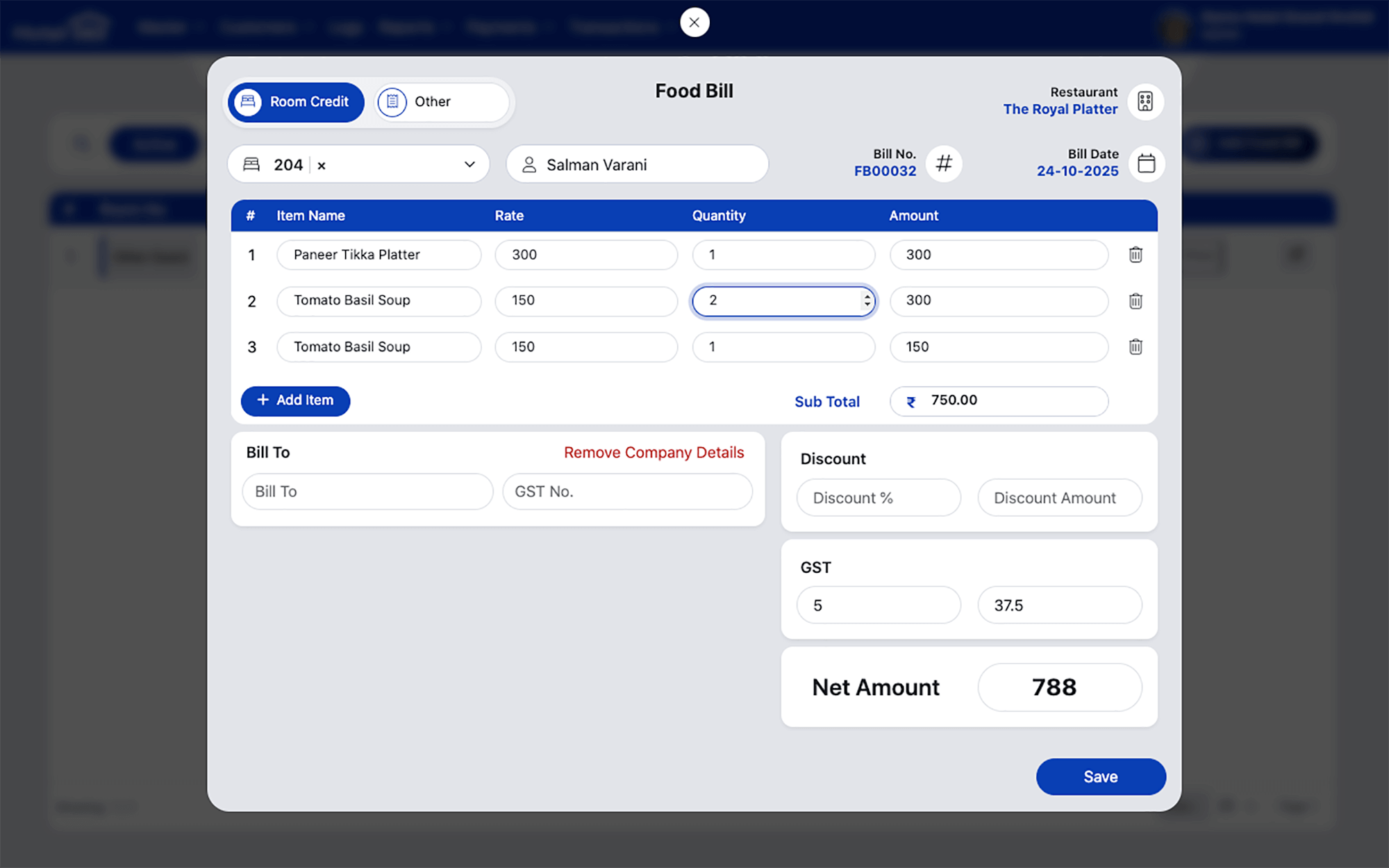 Handle all extra services like dining, laundry, and add-on charges with ease. Automatically post them to guest folios for seamless billing.